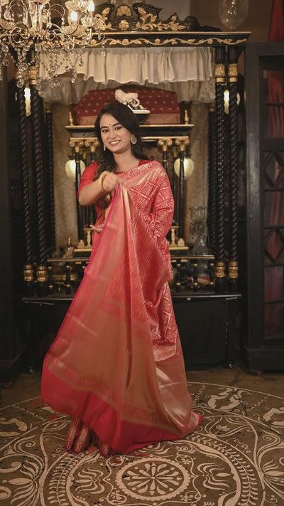Kumkum || Red Soft Silk Banarasi Saree with all over Box motif Jaal and border in Golden Zari