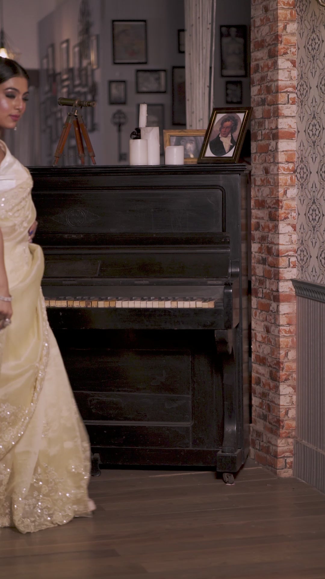 The gentle pastel yellow hue combined with intricate handwork lends a refined charm, while the sequins and cut-dana detailing add just the right amount of sparkle without overpowering the lightweight fabric. This saree offers an airy, fluid drape that complements every movement with grace.