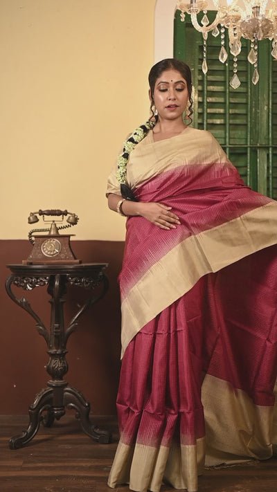 Colour: Dark Burgundy with Ivory Beige & Golden Zari Highlights
